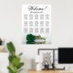 Este elegante quadro de assentos de casamento consiste em 15 mesas e apresenta uma design romântica com um solteiro verde-esmeralda longo e profundo, ao lado, e refletindo em uma piscina de água. O título, "Bem-vindo! por favor, encontre sua mesa" está escrito em um roteiro elegante, enquanto os nomes do casal e a data do casamento são exibidos na parte inferior. Com espaço para 150 convidados e 10 assentos por mesa, este gráfico fornece amplo número de assentos para a sua recepção de casamento. É uma maneira fantástica de adicionar elegância, classe e estilo ao seu dia especial, enquanto ajuda seus convidados a encontrar seus assentos com facilidade.