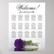 Este elegante quadro de assentos de casamento consiste em 15 mesas e apresenta uma design romântica com um solteiro roxo roxo profundo e profundo que se encontra do seu lado e que reflete numa piscina de água. O título, "Bem-vindo! por favor, encontre sua mesa" está escrito em um roteiro elegante, enquanto os nomes do casal e a data do casamento são exibidos na parte inferior. Com espaço para 150 convidados e 10 assentos por mesa, este gráfico fornece amplo número de assentos para a sua recepção de casamento. É uma maneira fantástica de adicionar elegância, classe e estilo ao seu dia especial, enquanto ajuda seus convidados a encontrar seus assentos com facilidade.