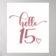 Poster 15th Birthday Women Hello 15 Cute 15 Years Old