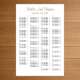 Este gráfico alfabético de assentos irá ajustado 160 convidados.