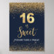 16 ESTÁ DOCE - POR FAVOR, PEGUE UM SINAL TREAT - Marinho E Dourado Tema 2 Glitter - 5x7 polegadas de tamanho.