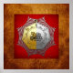 Apresentando a Coleção "Símbolos Sagrados" pelo Design Studio C.7. Aqui você encontrará um design único, com um símbolo do 16.º Grau: Príncipe de Jerusalém. Freemasonry é uma organização fraterna que surgiu de origens obscuras no final do século XVI ao início do século XVII. A maçonaria existe agora de várias formas em todo o mundo, com uma composição estimada em cerca de seis milhões. A fraternidade está organizada administrativamente em Grand Lodges ou, por vezes, Orients independentes, cada um dos quais rege a sua própria jurisdição, que consiste em Lodges subordinados (ou constituintes). Há também órgãos anexos, que são organizações relacionadas ao principal ramo da Freemasonry, mas com a sua própria administração independente. As lições do 16º destinam-se a ajudar aqueles que trabalham na construção do Templo Simbólico; a julgar equitativa e equitativamente; a manter a fé na justiça e no benfeitor de Deus e a fazer avançar com esperança os perseguidos e oprimidos. Este diploma ensina "heroísmo da paciência, nobreza do autosacrifício" e julgamento compassivo, juntamente com caridade, fidelidade e fraternidade. O avental é creme, bordado em ouro e aurora-cor, e com quadrado, escudo, Delta (com três YOD's), equilíbrio e uma mão de justiça. A joia é uma medalha de ouro. De um lado está gravada uma mão, que mantém um equilíbrio igual, simbolizando a justiça e o compaixão de Deus, mantida em equilíbrio por Sua vontade solteiro e sabedoria infinita. Por outro lado, há uma espada de dois gumes, de casco cruzado, com uma estrela sobre o ponto e duas sobre cada lado. A espada está ereta, inclinada para baixo. De um lado das estrelas está a letra 'D' e, do outro, a letra 'Z', as iniciais de Darius e Zerubbabel.