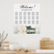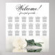 Aumente a elegância, o romantismo e o talento de sua celebração de casamento com este assento de 18 mesas, que acomoda até 180 convidados, cada mesa tendo 10 assentos. A design apresenta um humor floral contemporâneo, atordoante, que inclui um marfim solitário, de consistência longa, branco ou rosa de cor creme colocado horizontalmente e refletindo numa piscina de água. O título está escrito em uma caligrafia elegante e diz: "Bem-vindo! Por favor, encontre seu lugar", com os nomes dos recém-casados e a data do casamento no fundo. Este quadro oferece uma excelente oportunidade para acolher calorosamente os seus convidados e ajudá-los a localizar os respectivos assentos com facilidade.