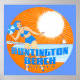 Etiqueta de bagagem de Huntington Beach, Califórnia, em 1947, mostrando uma jovem que gosta do tempo quente.