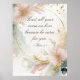 Poster com a escritura de citação inspiradora cristã retrata uma elegante aquarela floral com uma simples estrutura de ouro e flores cor-de-rosa e cinza, cor-de-rosa, e verde-verde. Ele apresenta uma Bíblia encorajadora Verse de 1 Peter 5:7, "Deem todas as suas preocupações nele porque ele se importa com você."