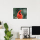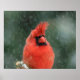 Pôster 20x16 Cardeal em um pinheiro durante uma tempestad