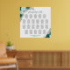 Adicione charme e sofisticação à sua recepção de casamento com este lindo quadro de assentos de casamento, adornada com um design floral de cor aquática rústica. Com assentos para até 220 hóspedes, cada mesa acomodando 10 assentos, este quadro apresenta uma mistura rústica de rosas e flores em tons de chato, turquesa, aqua e ciano, graciosamente entrelaçados com grampos de folhas de eucalipto e verde de jardim. O elegante título de caligrafia de escrita adiciona um toque de glamour, criando uma atmosfera sofisticada para o seu dia especial, e há espaço para os nomes de casais e a data do casamento no fundo.