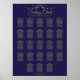 Torne a sua recepção de casamento bonita com este quadro de 23 assentos de mesa (230 convidados). Ele apresenta um design simples mas elegante com texto dourado sobre fundo azul marinho com borda floral de folha de papel dourada. Este gráfico mostra as atribuições de mesa para que seus convidados tenham facilidade em encontrar a mesa certa.