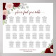 Este lindo gráfico de assentos de casamento de 26 mesas apresenta um design bólus rústico com rosas de aquarela pintados manualmente em tons de vermelho, burgundy e rosa-pincel. Há rochas de folhas de eucalipto, verde-jardim e flores de lavanda junto com um título elegante de caligrafia. O layout tradicional tem atribuições de assentos para 260 convidados com 10 assentos por mesa. Excelente modo de adicionar beleza, elegância e estilo à sua recepção de casamento enquanto fazer, é fácil para os seus convidados encontrarem as suas mesas.