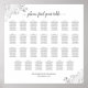 Este lindo quadro de assentos de casamento tem 27 mesas em 10 lugares por mesa ou 270 convidados. Ele apresenta um simples, mas elegante design com texto de cinza escura em um fundo branco e um filme decorativo de folha de prata nos cantos. O título está escrito em caligrafia de script de rico e diz: Por favor, encontre sua mesa. Na moda e sofisticado!