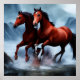 2 Belo cavalo selvagem de castanha na poster de fantasia do rio