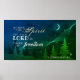 Bela poster retrata uma floresta de pinheiros com céu noturno cheio de estrelas e flocos de neve. Apresenta Bíblia Verso 2 Corintianos 3:17, "onde o Espírito do Senhor está, há liberdade."