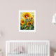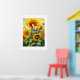 Arte de parede branca divertida e decorativa para o quarto de infantários ou crianças. Rato bonito e girassóis.