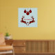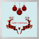 Uma poster de Natal com uma ilustração de 2 cervos de Natal saltando. Os cervejeiros são feitos de xadrez vermelha e preta, com um pequeno coração no meio. 3 xadrezes de decoração de natal pendurada. Feliz Natal escrito entre os veados e pode ser editado para dizer o que você gosta.