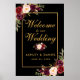 Watercolor Floral Burgundy Preto e Dourado Poster de Boas-vindas