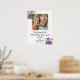 Este sinal de boas-vindas do Aniversário do Casamento tem uma elegante caligrafia de script, uma estrutura dourada com 1 foto especial e rosas roxos. Você pode personalizar este sinal com seus detalhes de aniversário de casamento.