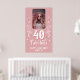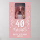 Painel de fundo do cartaz de festa de 40º aniversário com foto. Texto 40 e fabuloso em script branco trendy com um nome e folhagem branca em um fundo rosa. Personalize com sua foto, seu nome e a idade.