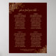 Este lindo gráfico de assentos de casamento de 4 mesas inclui atribuições de mesa para 40 convidados, com 10 pessoas em cada mesa. O design é simples, mas elegante, com texto dourado sobre fundo amarelo ou chocolate e apresenta um filigre floral de legado nos cantos e um título de caligrafia com rico, que diz "por favor encontre sua mesa." Sofisticado e chique.