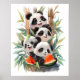 4pandas e uma melancia. Desenho de aquarela
