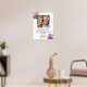 Este sinal de boas-vindas do Aniversário do Casamento tem uma elegante caligrafia de script, uma estrutura dourada com 1 foto especial e rosas roxos. Você pode personalizar este sinal com seus detalhes de aniversário de casamento.