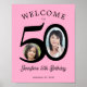 Poster 50th birthday party 2 photo black pink welcome