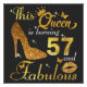 Esta rainha está fazendo 57 anos e uma fabulosa camisa de aniversário! Esta camisa apresenta uma bela ilustração de uma mulher de 57 anos de idade num vestido preto vibrante. Perfeito por celebrar o seu grande dia, esta camisa certamente fará você parecer fabulosa. Feito com 100% de algodão mole, é confortável vestir e perfeito para qualquer ocasião. Pegue o seu hoje!