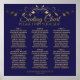 6 mesas de assentos de casamento desenhados para ajudar seus convidados a encontrar a mesa certa na sua recepção. O design simples, porém elegante, apresenta impressão de ouro sobre um fundo azul marinho. Letra de script chic com uma borda floral.