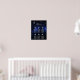 Um gráfico de 6 mesas para um tema de casamento celestial, com a lua e a estrela num fundo azul-noturno estrelado. Os números das mesas estão escritos em grandes estrelas de cinza. A lua, as estrelas e a palavra Bem-vindo (escrita em um roteiro caligráfico elegante) são cinzas de prata, o resto do texto é branco. A foto noturna estrelada é de Felix Mittermeier, de Pixabay, e está livre para uso comercial.
