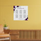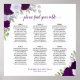 Este lindo gráfico de assentos mostra um charmoso design de aquarela rústica adornado com rosas e flores em tons de roxo empoeirado, lavanda e ameixa, complementado por delicadas folhas de eucalipto e verde-esmagador. O título elegante da caligrafia diz "por favor encontre sua mesa", e é acompanhado dos nomes dos casais e da data do casamento no fundo. Com espaço para 60 hóspedes (10 lugares por mesa), este gráfico de assentos garante uma navegação de mesa sem esforço para seus hóspedes, ao mesmo tempo que adiciona uma atmosfera de refinamento, beleza e sofisticação à sua recepção de casamento.
