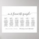 Gráfico de Casamento Minimalista As nossas pessoas favoritas para 60 convidados. Um design elegante em preto e branco ou qualquer cor de fundo que você escolher. Basta clicar no link personalizar mais, mostrado na área de personalização de texto à direita, e escolher seu fundo de cor personalizado. Este poster de placa torna rápido e fácil criar acréscimos incríveis à decoração do casamento. Os sinais podem ser diminuídos, há muitos tamanhos a serem escolhidos, assim como opções de enquadramento e correspondência personalizados.
