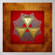 Introdução à Coleção "Símbolos Sagrados" pelo Design Studio C.7. Aqui encontrará um design único, com símbolo do msônico 6: Secretário íntimo ou Mestre da Serpente Brasileira. Freemasonry é uma organização fraterna que surgiu de origens obscuras no final do século XVI ao início do século XVII. A maçonaria existe agora de várias formas em todo o mundo, com uma composição estimada em cerca de seis milhões. A fraternidade está organizada administrativamente em Grand Lodges ou, por vezes, Orients independentes, cada um dos quais rege a sua própria jurisdição, que consiste em Lodges subordinados (ou constituintes). Há também órgãos anexos, que são organizações relacionadas ao principal ramo da Freemasonry, mas com a sua própria administração independente. As lições do 6º são zelo, fidelidade, benevolência e agir como pacificador. Neste grau, é preciso aprender o dever, a caridade e a tolerância. Dizem-nos para nos remodelarmos e pensarmos em caridade, autocontrolo e sucesso. Seja um pacificador. O avental é branco e vermelho, com letras hebraicas YOD HEH no centro, e um pequeno triângulo contendo as letras hebraicas (no sentido dos ponteiros do relógio no topo) BETH, NUN e SHIN. A joia é um triângulo dourado com as mesmas três letras inscritas.