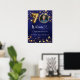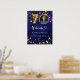 Um poster de boas-vindas para uma festa de aniversário 70. Um fundo azul marinho com estrelas douradas elegantes. A cor azul é irregular. Personalize e adicione uma foto, nome e texto. Cartas brancas.