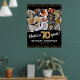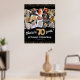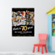 Poster de imagem Elegante de festa de aniversário 70 com fundo na moda preto que pode ser mudado para qualquer cor, uma colagem de 15 fotos ao longo dos anos, o ditado "cai para 70 anos", bordas reluzentes de ouro, seu nome e a data da celebração.