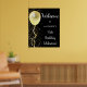 Poster de boas-vindas de 70, personalizável, com um balão de ouro brilhante, com um chá de brilho dourado sobre fundo preto.