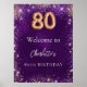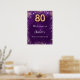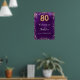 Um poster de boas-vindas para uma festa de aniversário de 80 giro e glamourosa. Um fundo roxo profundo decorado com faíscas falsas. A cor roxa é irregular. Personalize e um nome.