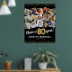 Poster de imagem Elegante de festa de aniversário 80 com fundo na moda preto que pode ser mudado para qualquer cor, uma colagem de 15 fotos ao longo dos anos, o ditado "alegre a 80 anos", bordas reluzentes de ouro, seu nome e a data da celebração.