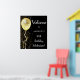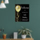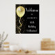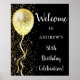 Poster de boas-vindas de 80, personalizável, com um balão de ouro brilhante, com um chá de brilho dourado sobre fundo preto.