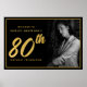 Poster 80th Birthday Photo Black Faux Gold Leaf Elegant