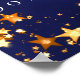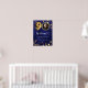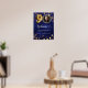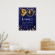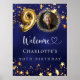 Posters de boas-vindas para uma festa de aniversário 90. Um fundo azul marinho com estrelas douradas elegantes. A cor azul é irregular. Personalize e adicione uma foto, nome e texto. Cartas brancas.