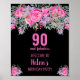 Design elegante para uma festa de aniversário 90 com "90 e fabuloso" cor-de-rosa e um nome escrito embelezado por flores aquáticas femininas em fundo branco. Personalizar idade, texto, nome e cor de fundo.