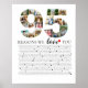 Expresse seu amor e admiração com nosso pôster de colagem de fotos 95 Razões pelas quais Amamos Você da The Arty Apples. Ideal para celebrar um aniversário de casamento especial, este lindo pôster apresenta uma colagem de fotos e razões sinceras pelas quais seu ente querido é querido.