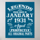 Poster 95th Birthday Gift Legend Born In January 1931 95