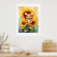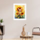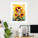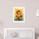 Arte de parede branca divertida e decorativa para o quarto de infantários ou crianças. Rato bonito e girassóis.