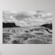 Esta imagem a preto e branco mostra a água fluindo para baixo na Islândia.