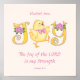 Este poster personalizado para o quarto de seus filhos tem um pintinho de bebê amarelo giro formando a palavra "JOY", decorado com rosas cor-de-rosa. A escritura que escolhemos diz "A Alegria do LORD é a minha Força" do Nehemia 8:10 e é personalizável.