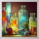 Poster de arte digital mágica apresenta itens encontrados na mesa de trabalho do Alchemist, incluindo garrafas de poções mágicas e elixires.