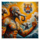 O trabalho de arte retrata uma cena poderosa e mística, misturando elementos da espiritualidade, mitologia e natureza. A figura central expele um senso de serenidade e força, enquanto os animais circundantes somam à aura geral de poder e mística. Figura central A figura central parece ser uma deusa ou uma divindade, adornada com intrincadas joias de ouro e uma expressão serena. Seu rosto meio sombreado poderia simbolizar a dualidade ou uma conexão entre diferentes reinos. Sua gentil interação com o filhote sugere compaixão e harmonia com
