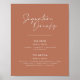 A assinatura bebe o moderno guião mínimo terracotta e o sinal de decor do dia da cerimônia.