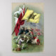 "Heróis revolucionários em Bunker Hill, lutando sob a primeira bandeira do nosso país, a bandeira de Rattlesnake." "Dont Tread On Me" é o lema na bandeira acenando sobre os colonizadores lutadores e os reversos neste postal patriótico de 1908.
