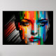 Retrato de pintura digital do rosto de uma bela jovem, em preto e branco, colorizado seletivamente e estilizado em bares coloridos. Este é outro design de 100% original de Hamster de Combate.